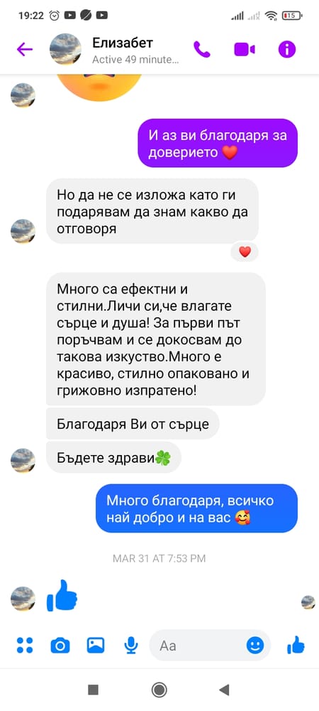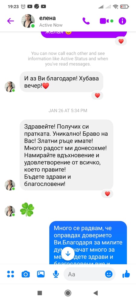 Разгледайте отзивите на стотици доволни клиенти, които споделят впечатленията си от моите творения.