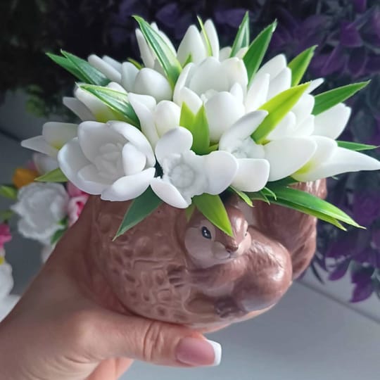 Ароматен букет кокичета от Глицеринов сапун в красива кашпа