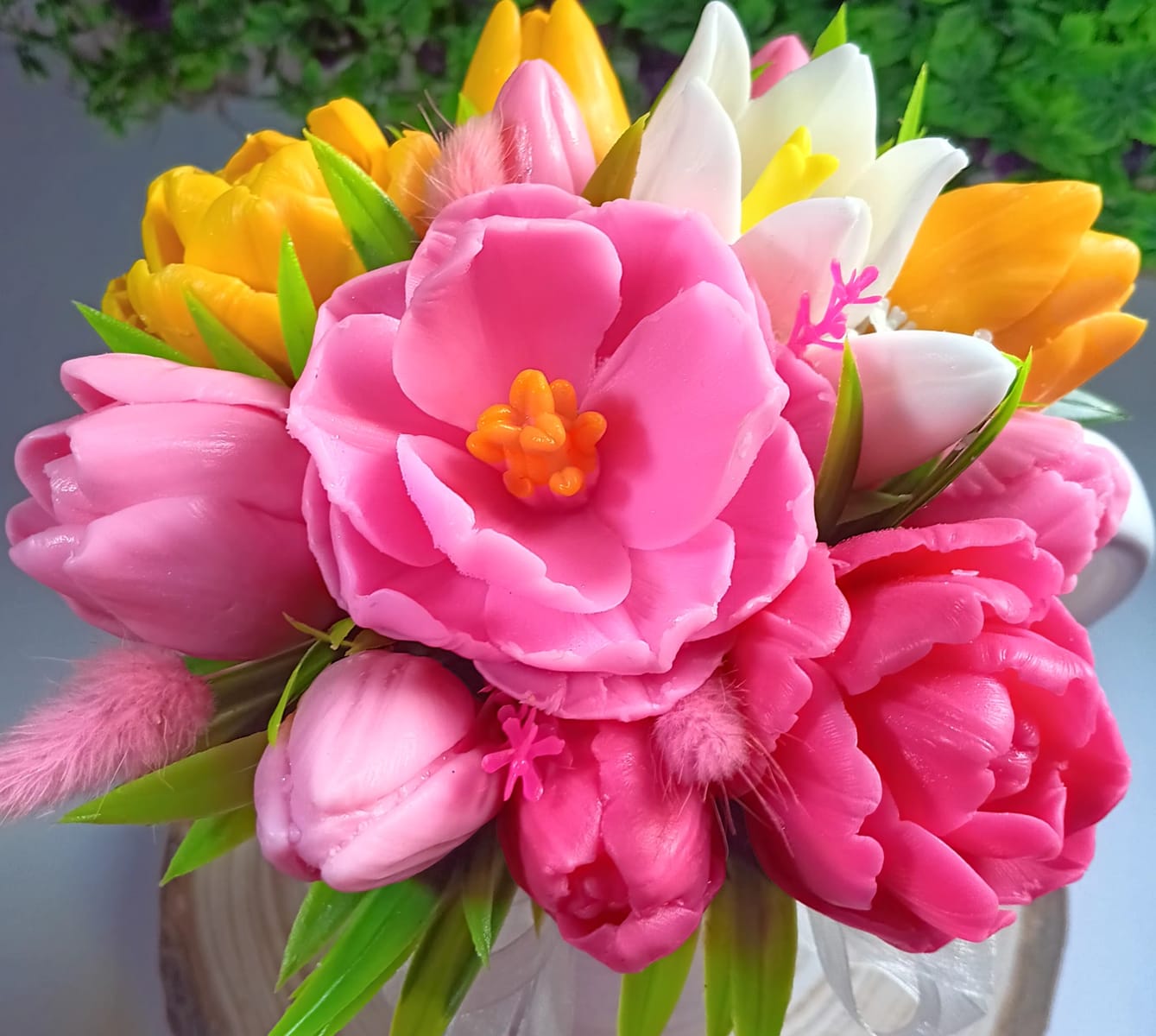 Начало / Продукти / Букет от глицеринов сапун / Ароматен букет лалета от сапун