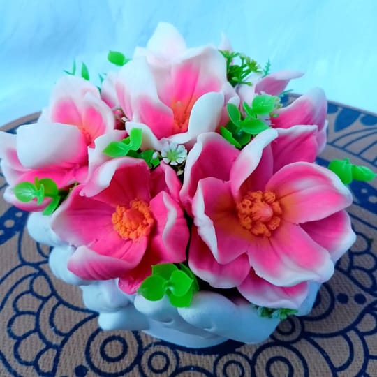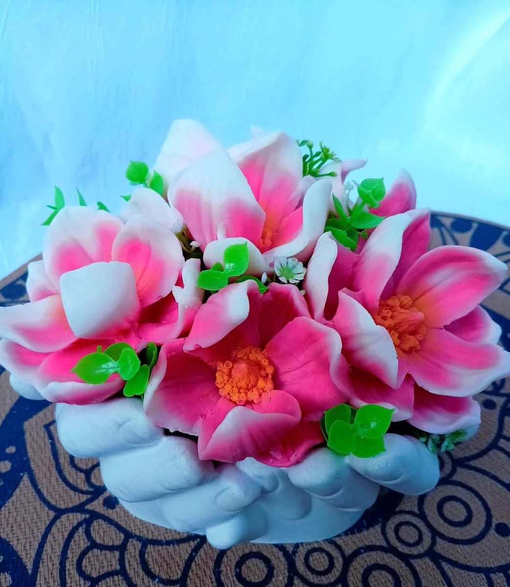 Ароматен букет от глицеринов сапун в ръчички.Нашите букети от глицеринов сапун са не само красиви, но и функционални. Можете да ги използвате като декорация, която не само ще озарява вашето пространство, но и ще носи приятно усещане за свежест. Те са идеални за подреждане на маси, рафтове или като подарък, който ще бъде запомнен.
