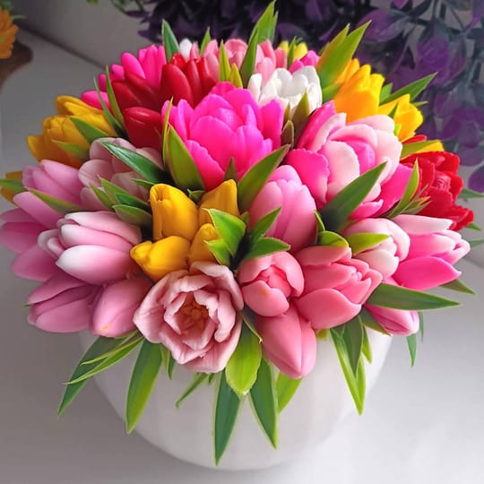 Ароматен букет от глицеринов сапун в керамична кашпа
