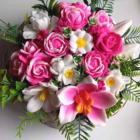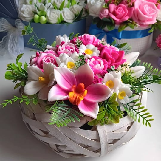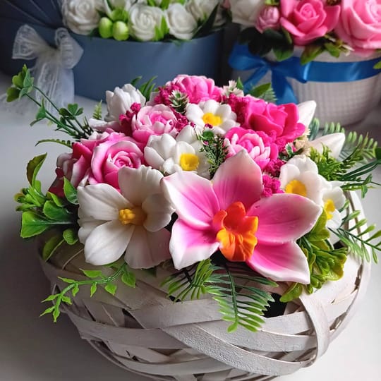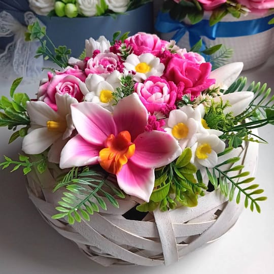Ароматен букет от Глицеринов сапун в ратанова кашпа