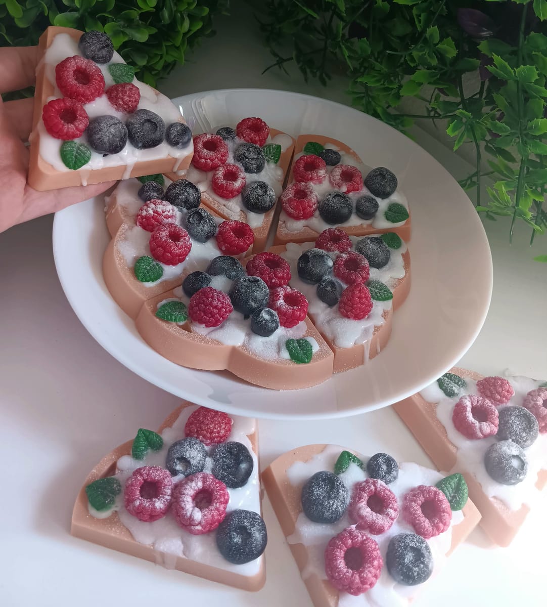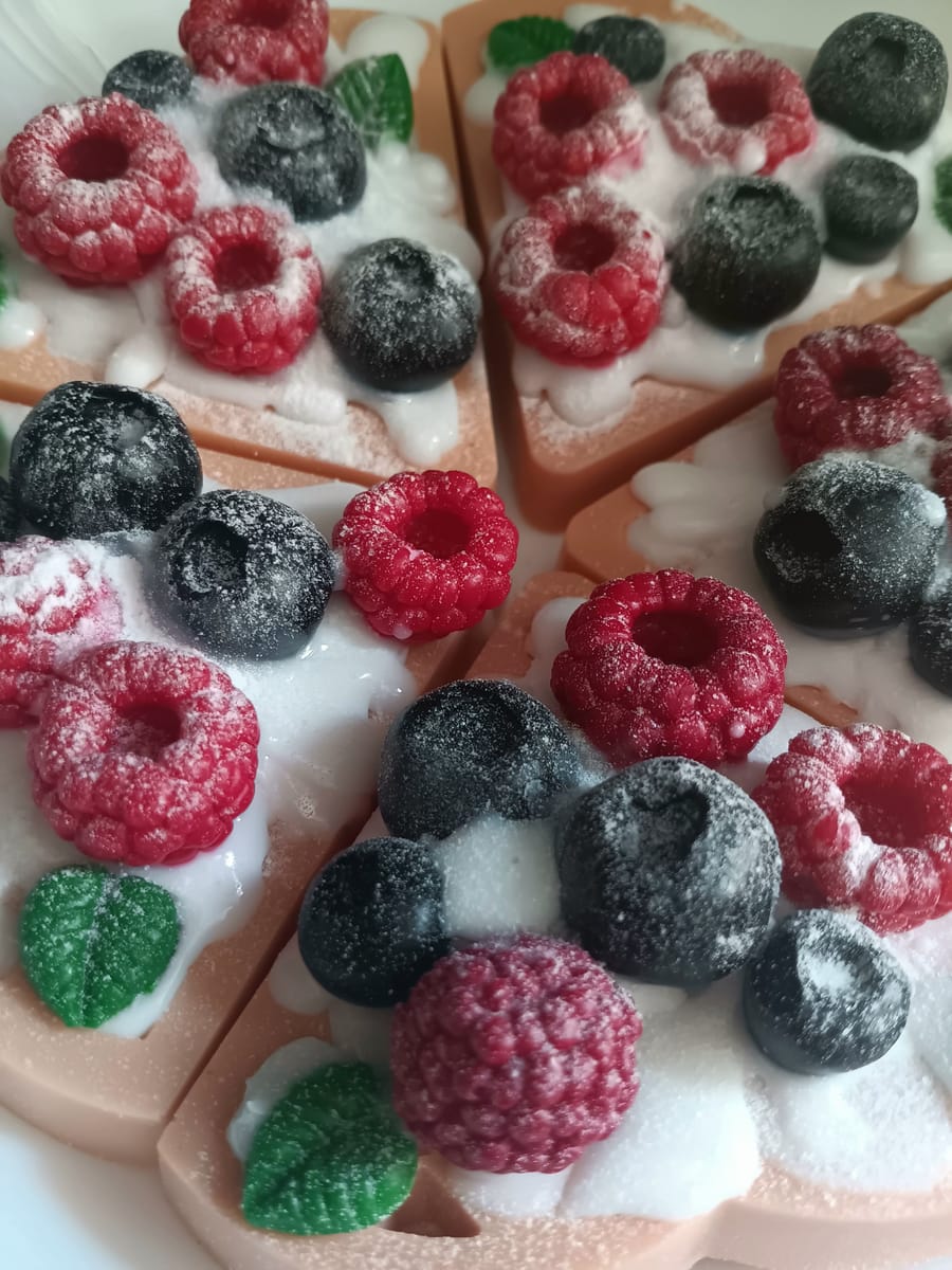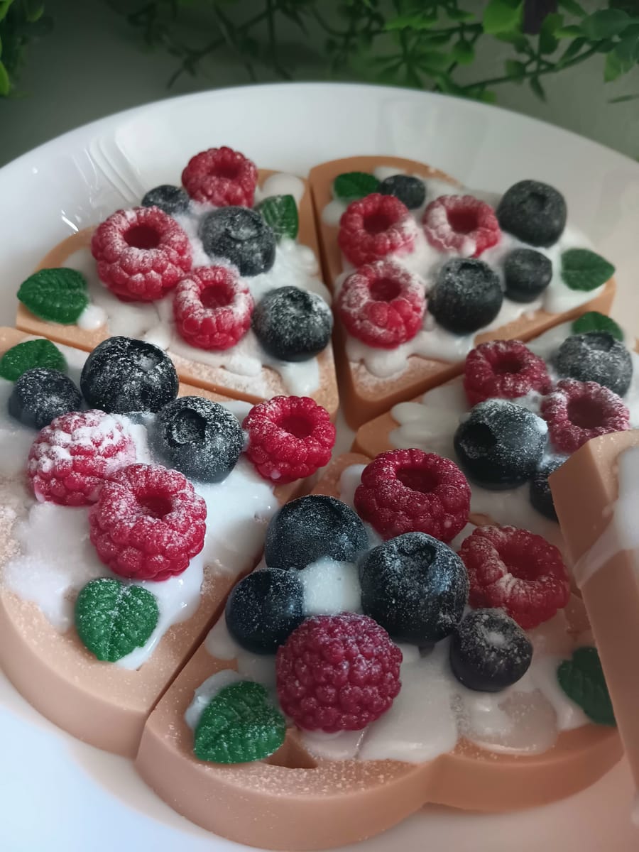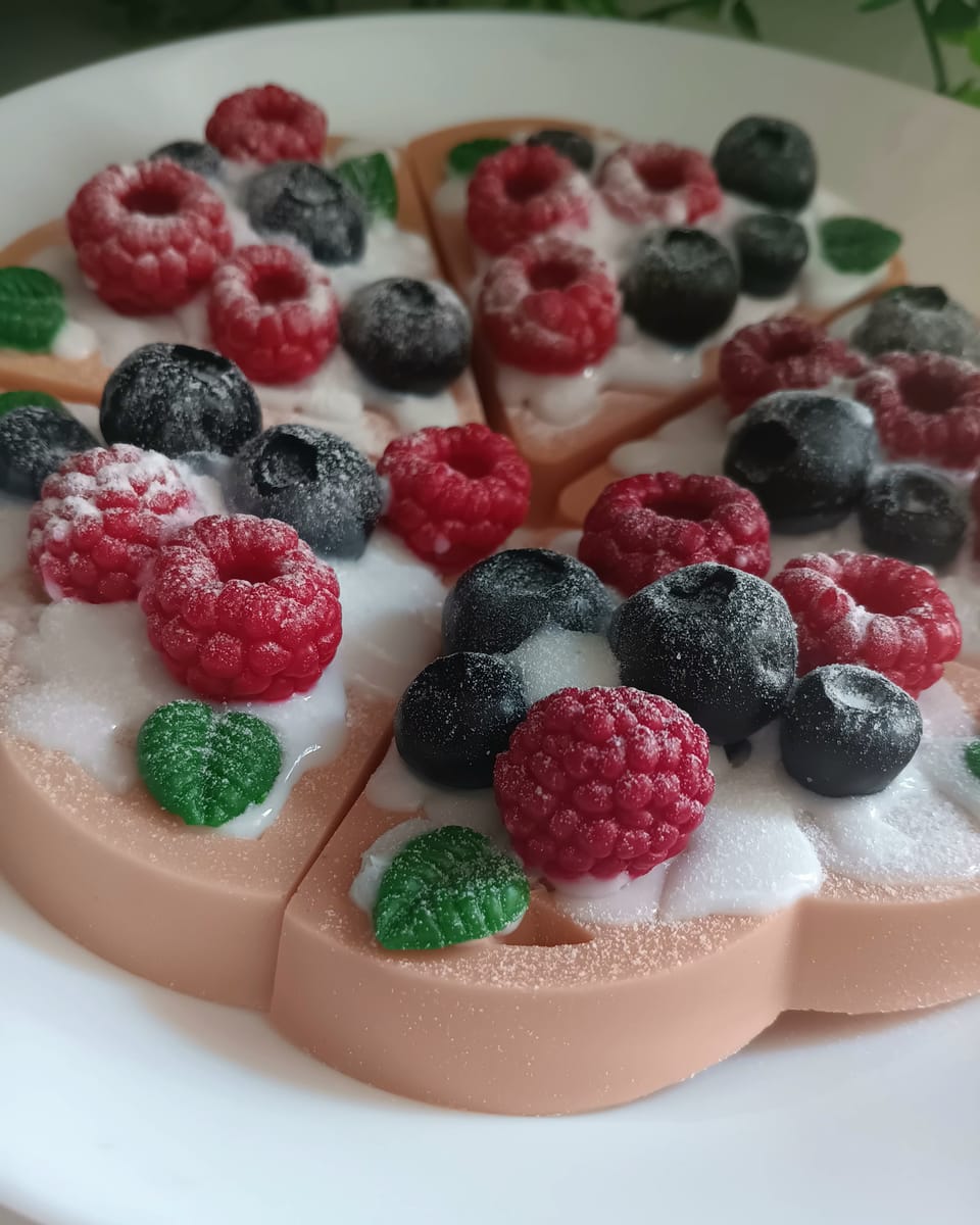 Цената е за 1бр ?? Не, не са гофрети... това са сапуни! ?✨ Глицеринови сапуни с форма на гофрети, украсени с „плодове“ и „сметана“. Всичко, което виждате – от основата до най-малката малинка – е ръчно направено от сапун.