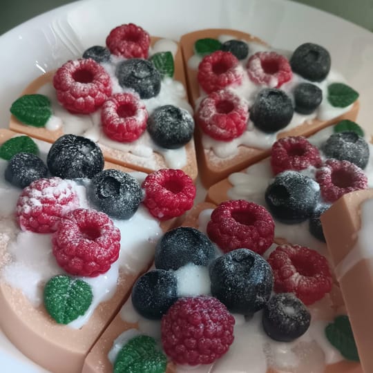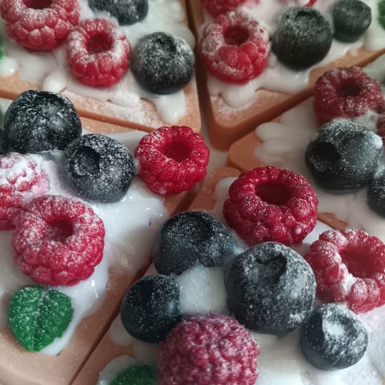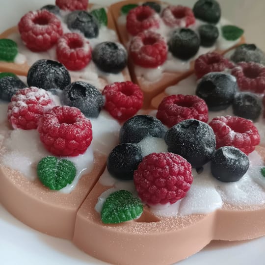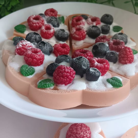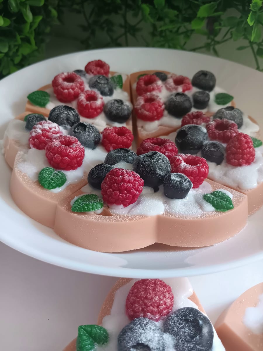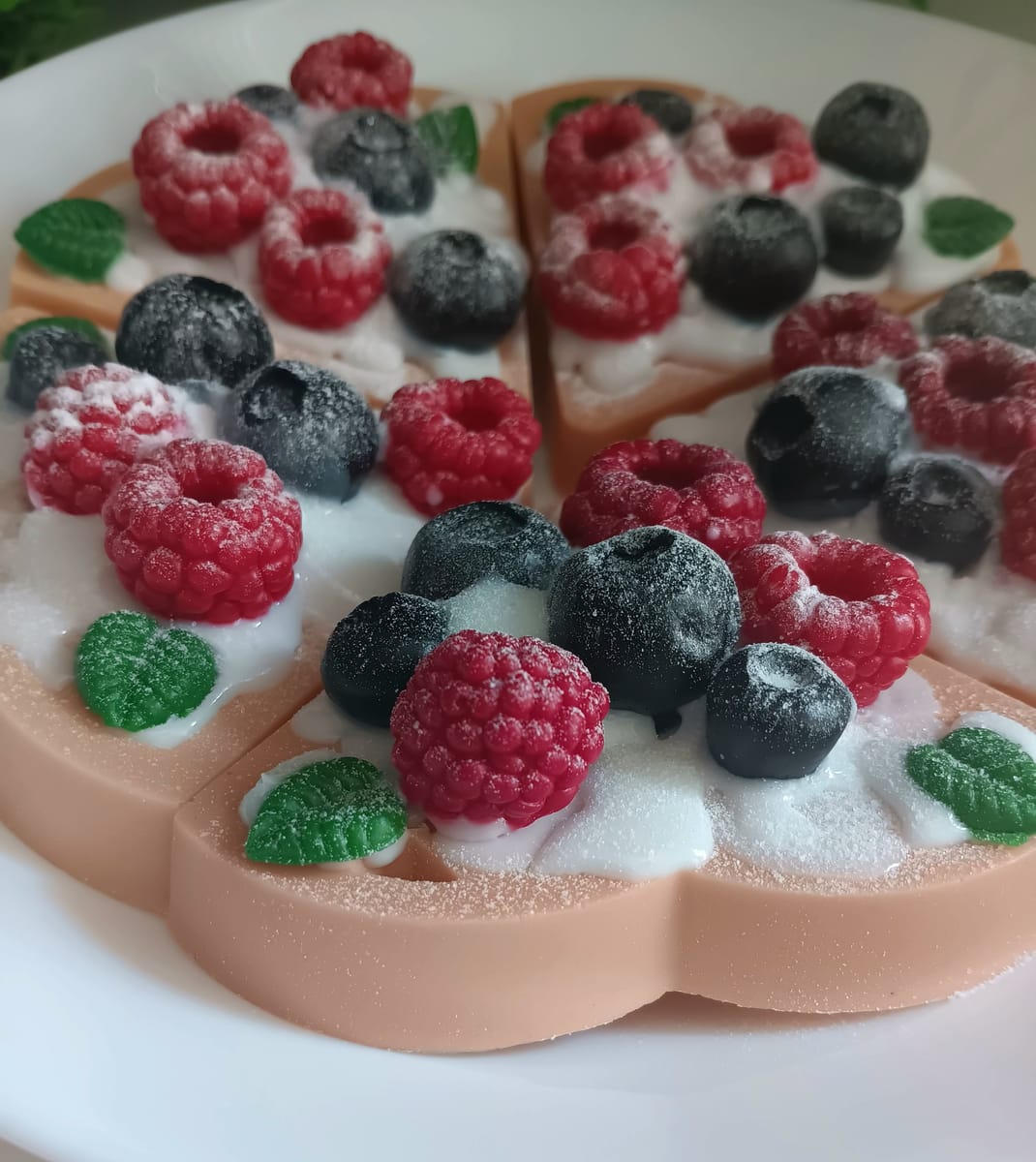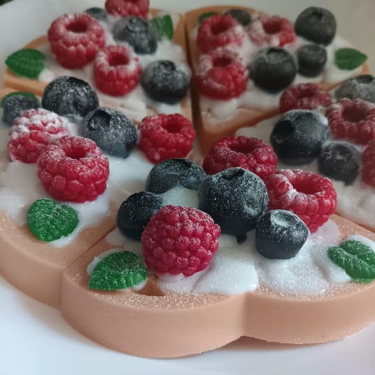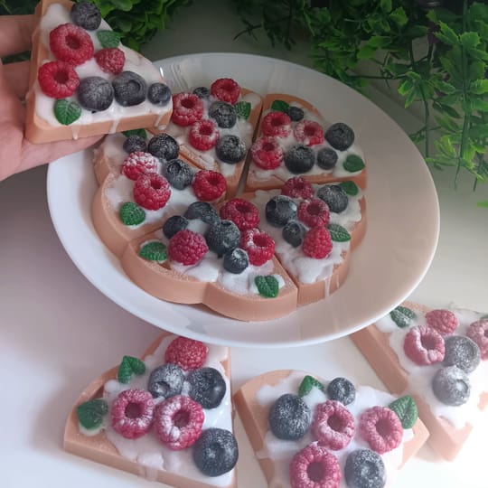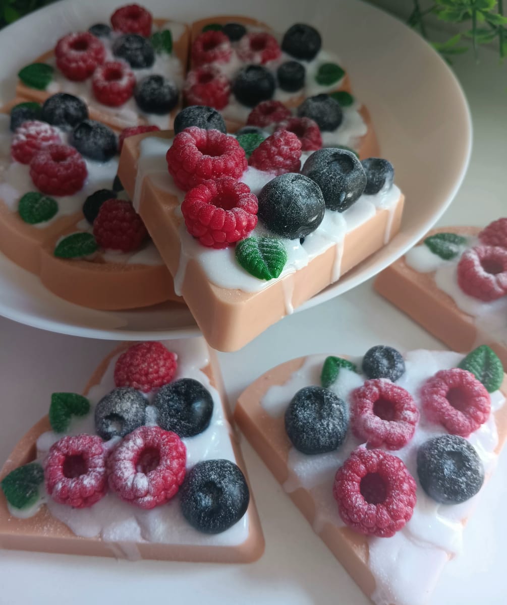 Цената е за 1бр ?? Не, не са гофрети... това са сапуни! ?✨ Глицеринови сапуни с форма на гофрети, украсени с „плодове“ и „сметана“. Всичко, което виждате – от основата до най-малката малинка – е ръчно направено от сапун.