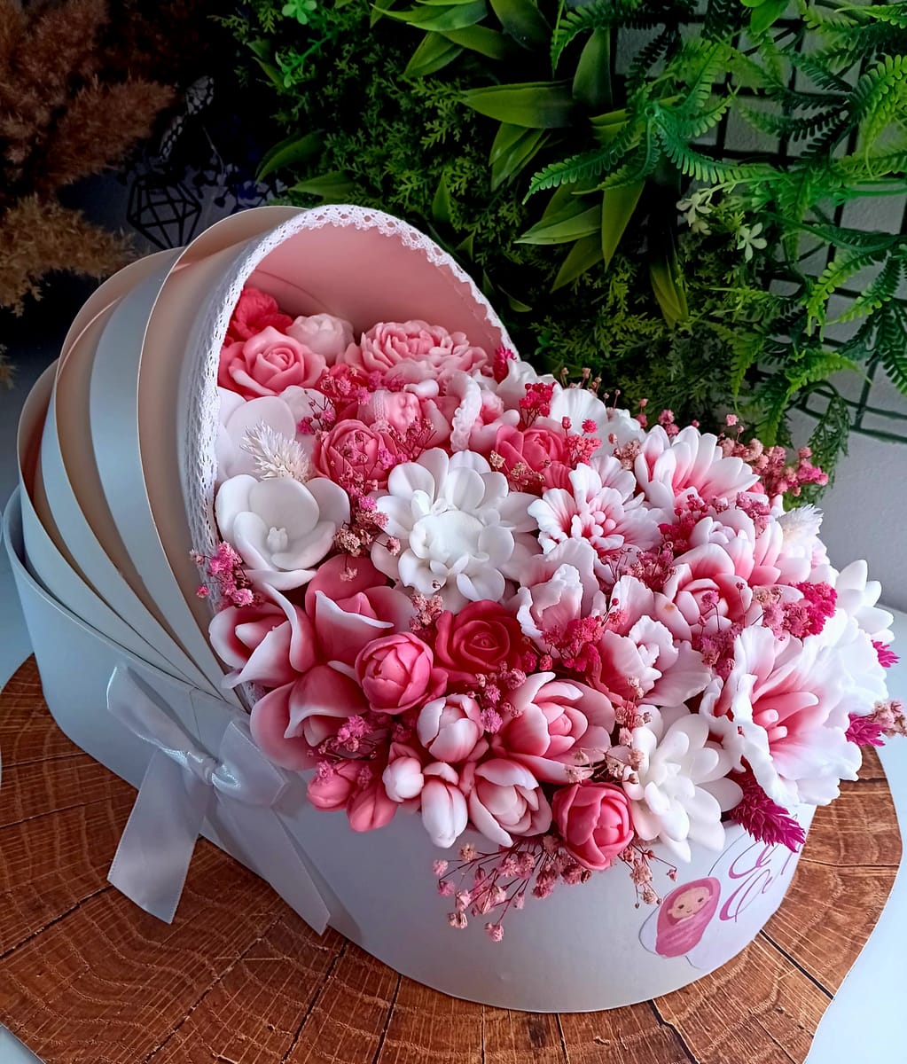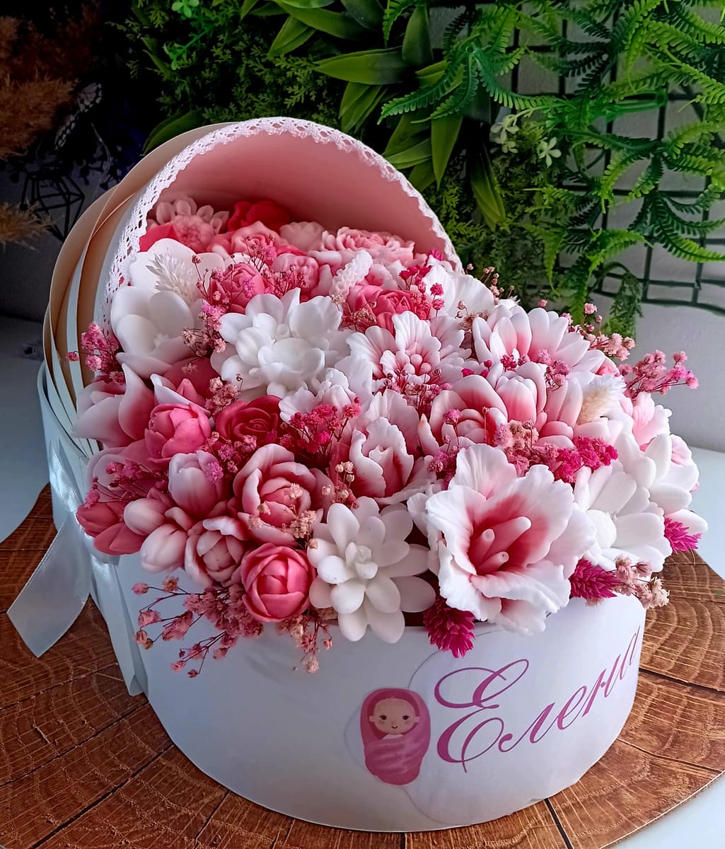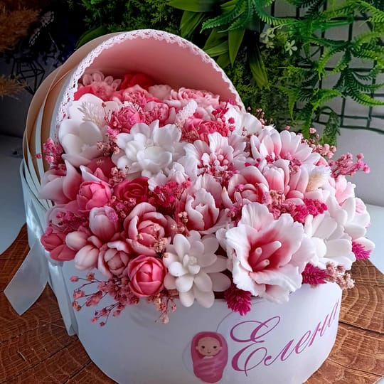 Букет "Бебешко кошче" с цветя от глицеринов сапун