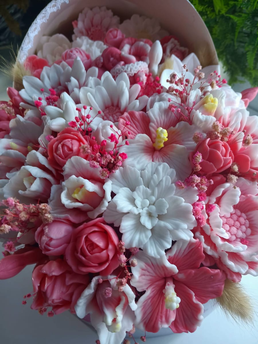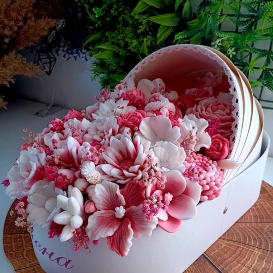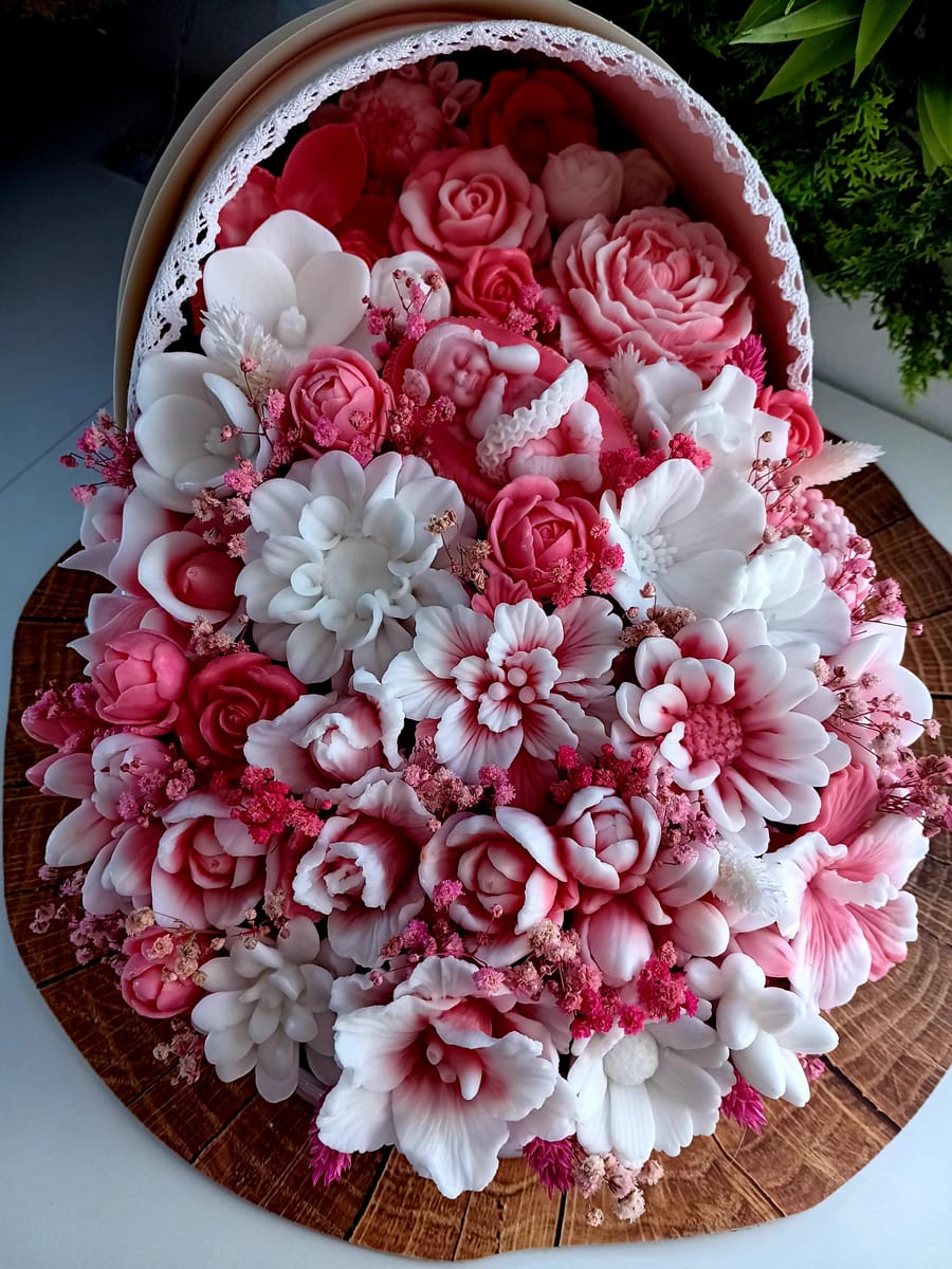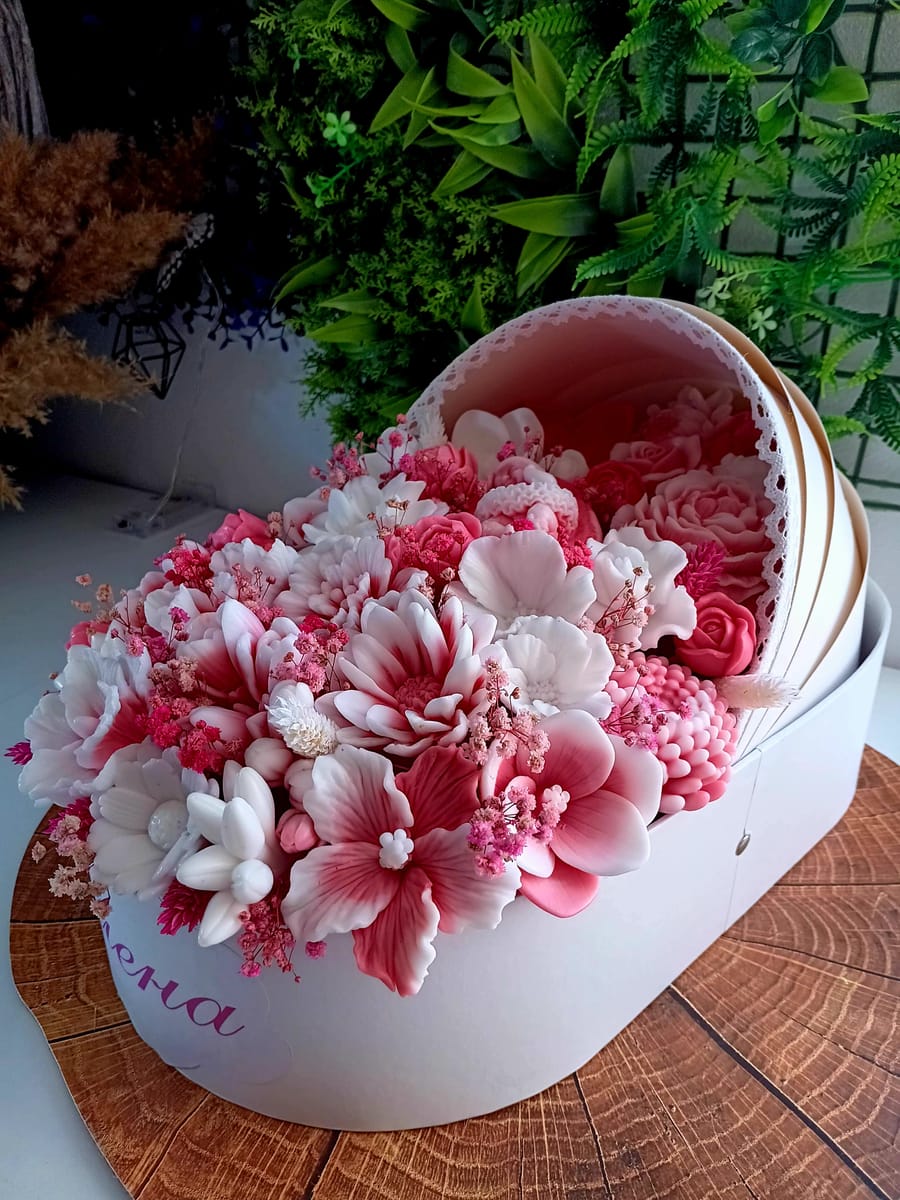 Букет "Бебешко кошче" с цветя от глицеринов сапун