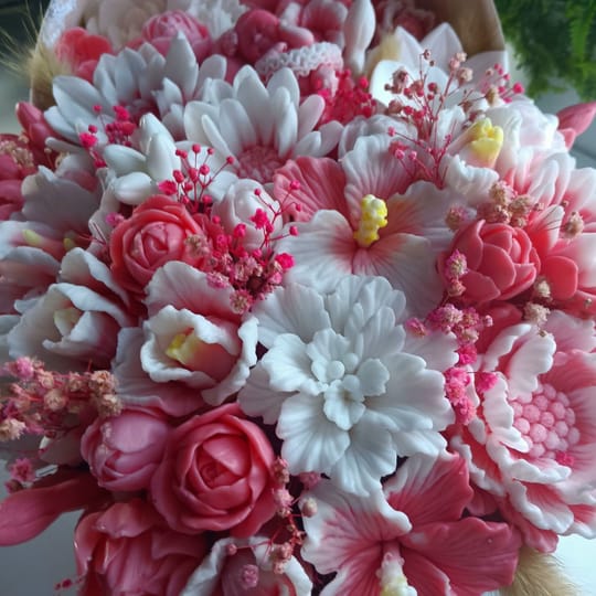 Ароматен букет от глицеринов сапун "Бебешко кошче" Нашите букети от глицеринов сапун са не само красиви, но и функционални. Можете да ги използвате като декорация, която не само ще озарява вашето пространство, но и ще носи приятно усещане за свежест. Те са идеални за подреждане на маси, рафтове или като подарък, който ще бъде запомнен.