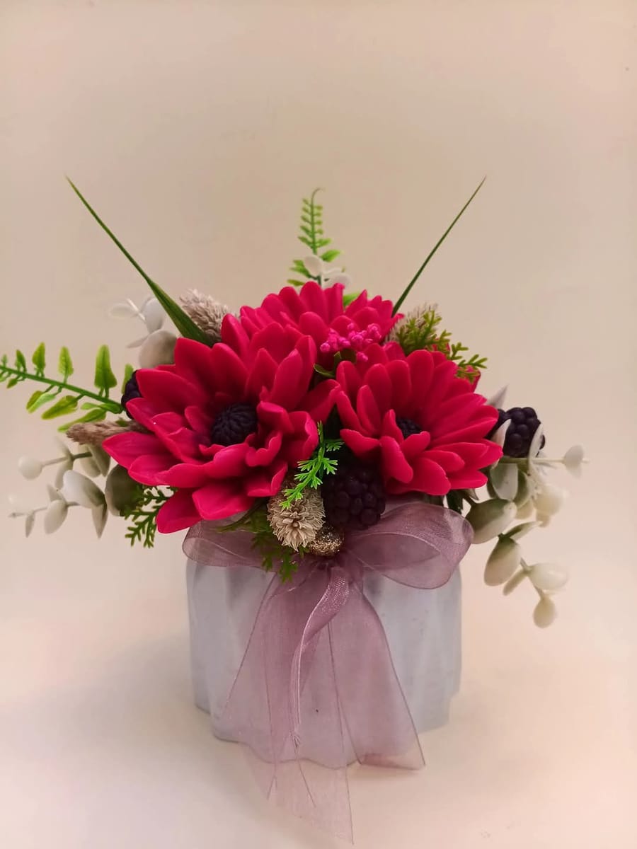 Ароматен букет от глицеринов сапун.Нашите букети от глицеринов сапун са не само красиви, но и функционални. Можете да ги използвате като декорация, която не само ще озарява вашето пространство, но и ще носи приятно усещане за свежест. Те са идеални за подреждане на маси, рафтове или като подарък, който ще бъде запомнен.