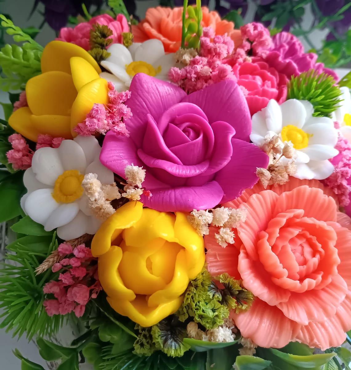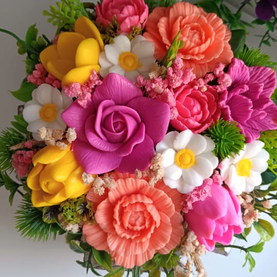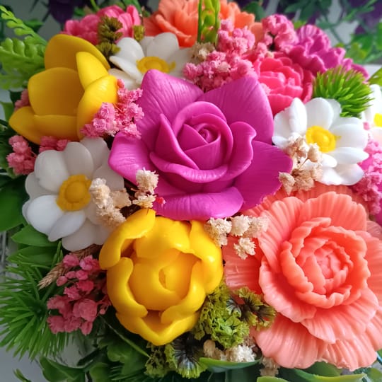 Нашите букети от глицеринов сапун са не само красиви, но и функционални. Можете да ги използвате като декорация, която не само ще озарява вашето пространство, но и ще носи приятно усещане за свежест. Те са идеални за подреждане на маси, рафтове или като подарък, който ще бъде запомнен.