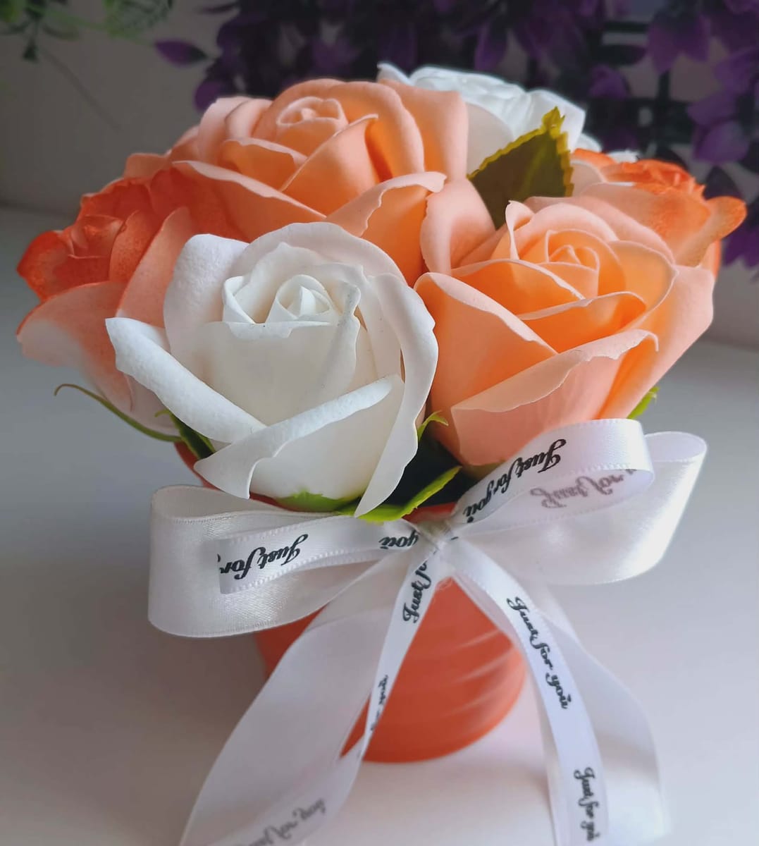 Букет с рози от пластичен сапун "Оранжеви мечти"