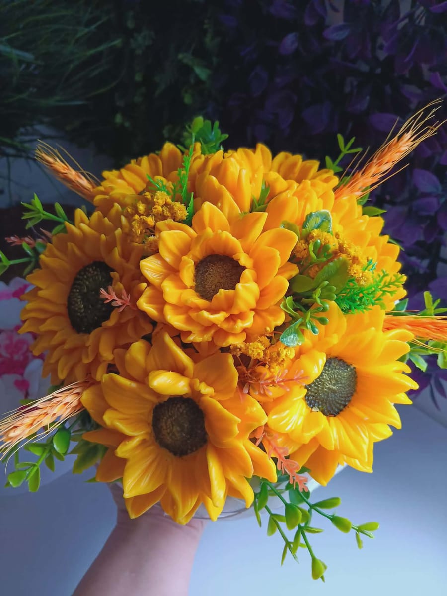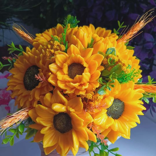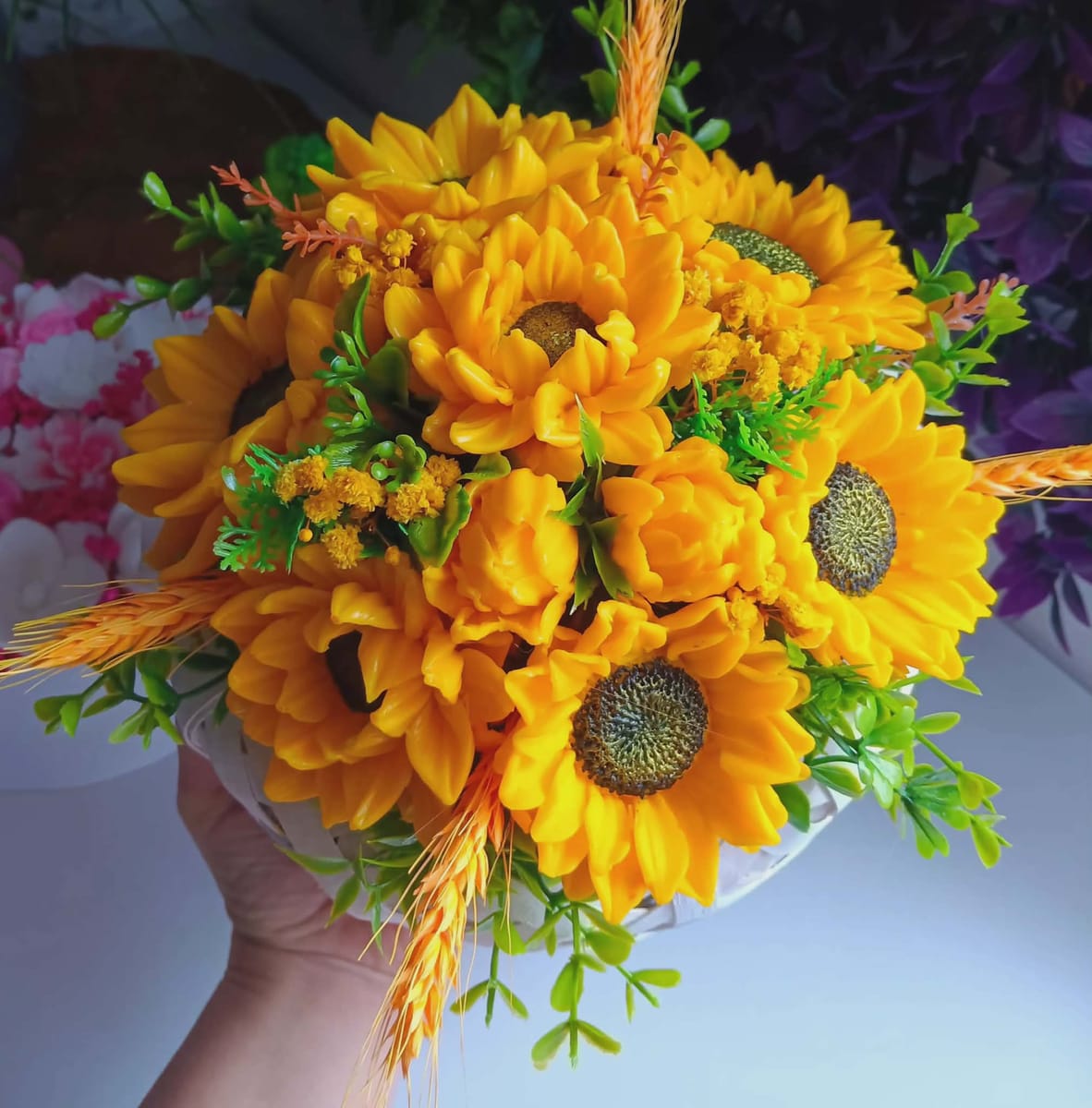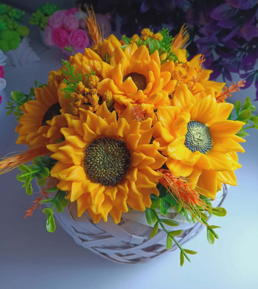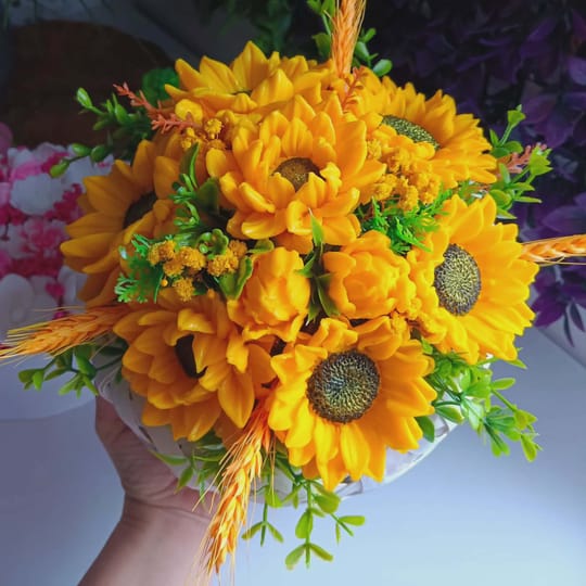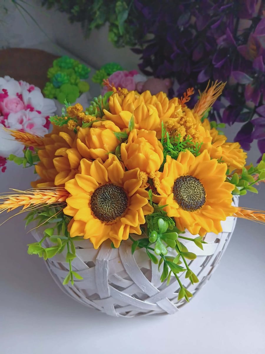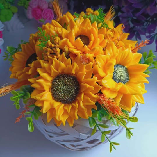 Букет от глицеринов сапун с аромат на цветя в красива ратанова кашпа