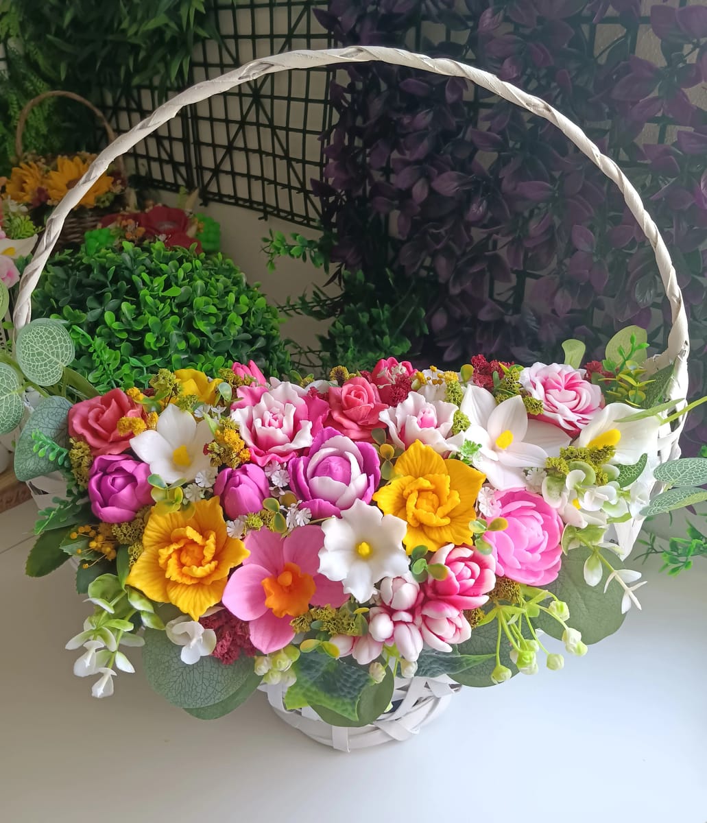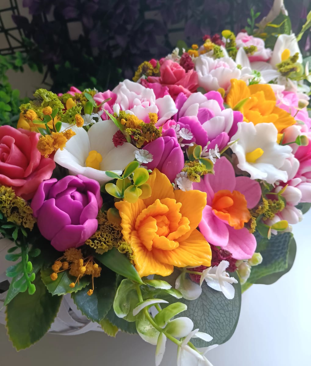 Начало / Продукти / Букет от глицеринов сапун / Кошница "Изобилие от цветове: