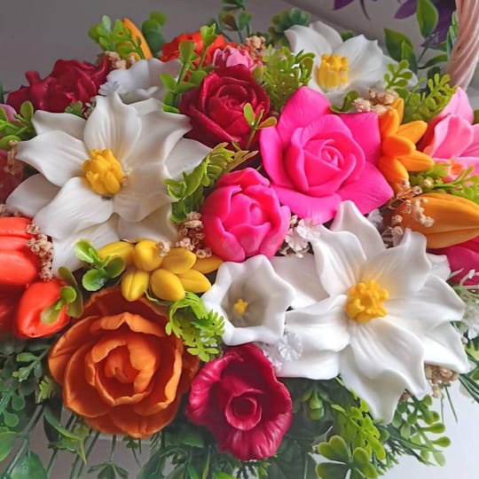 Начало / Продукти / Букет от глицеринов сапун / Кошница пълна с Ароматни Цветя "Цветове"