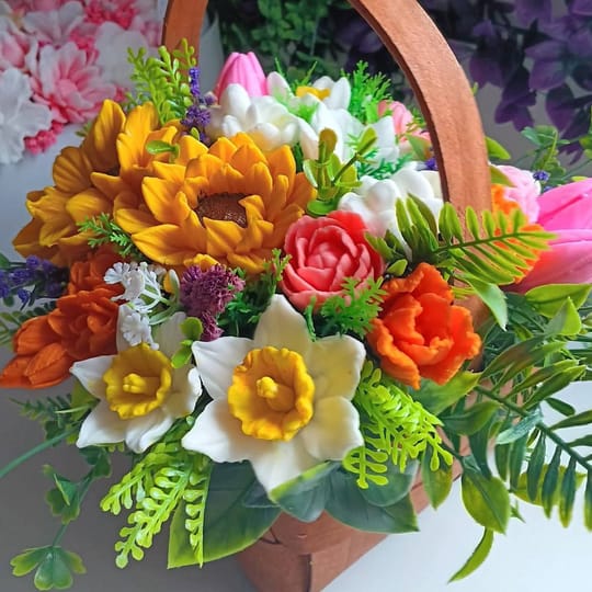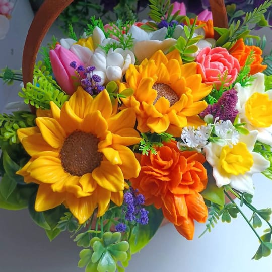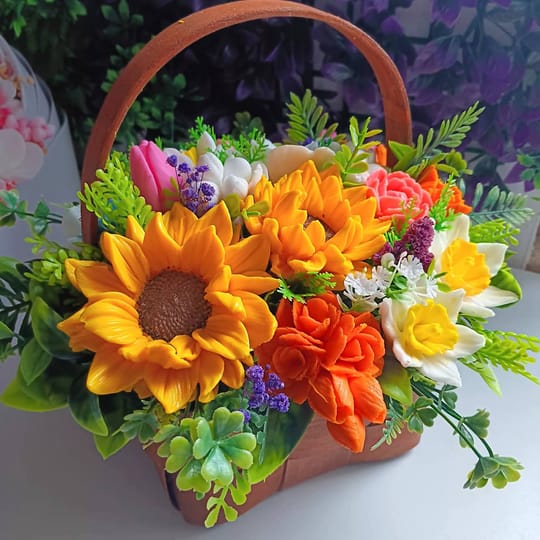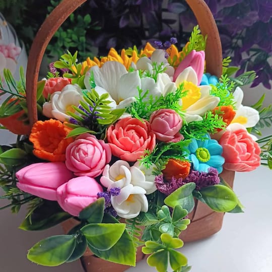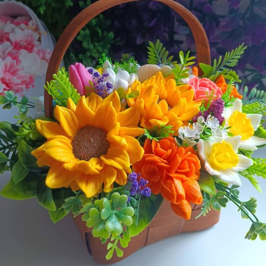 Ароматни Цветя от сапун в кошница