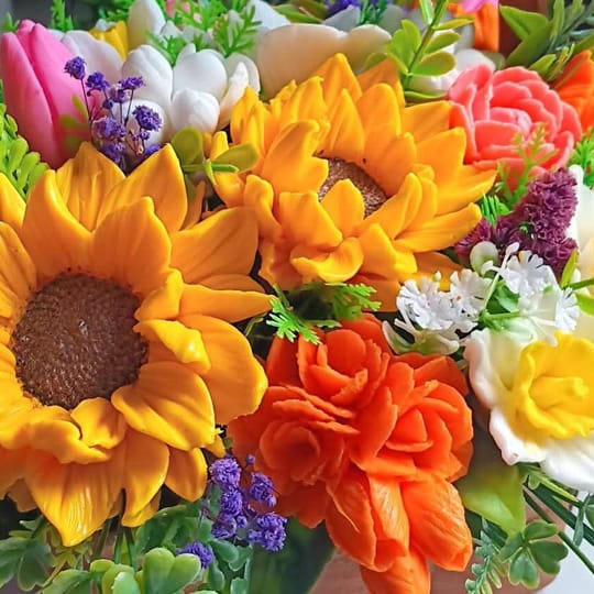 Начало / Продукти / Букет от глицеринов сапун / Ароматни Цветя от сапун в кошница