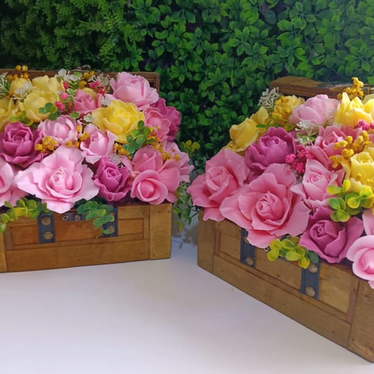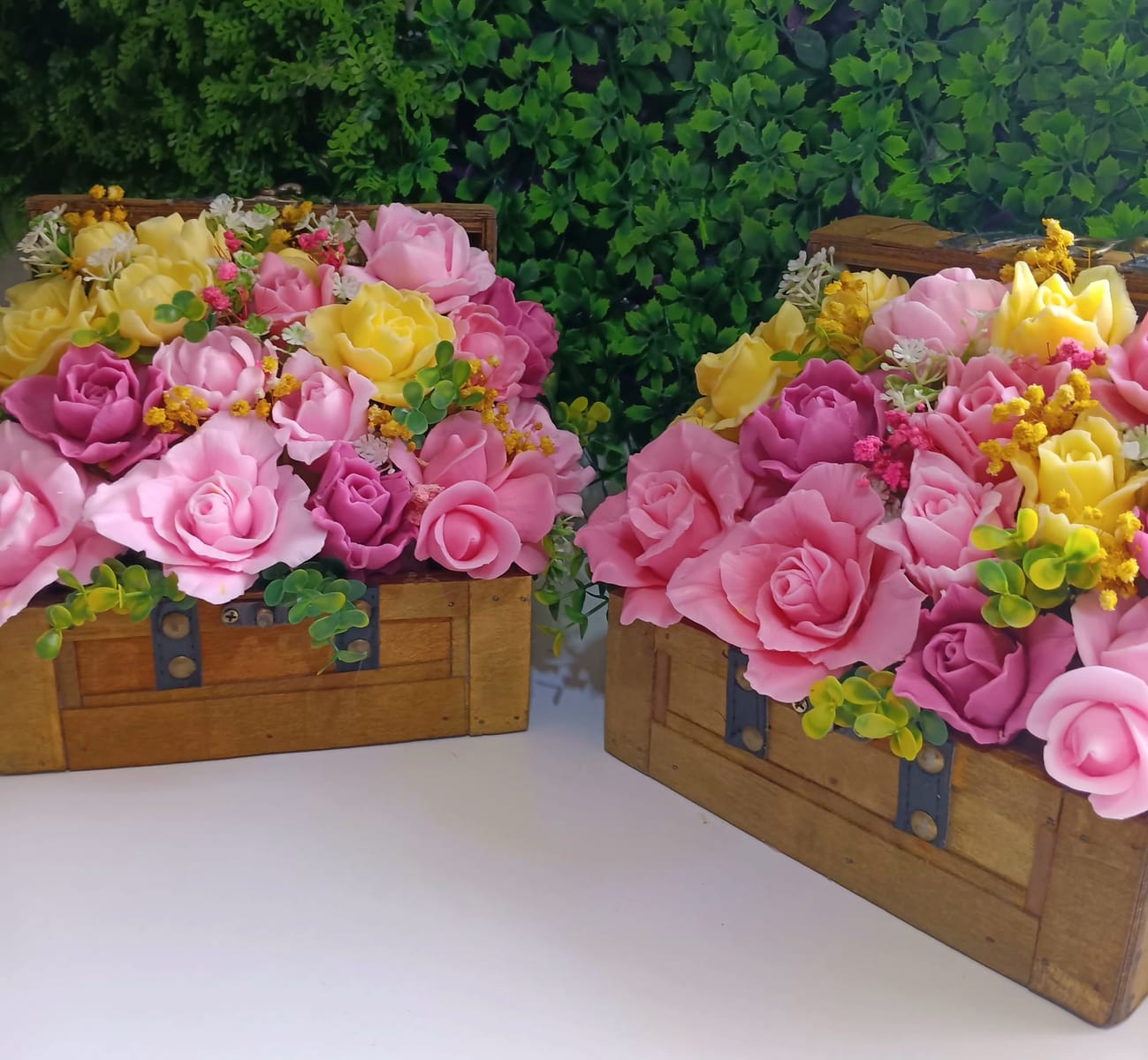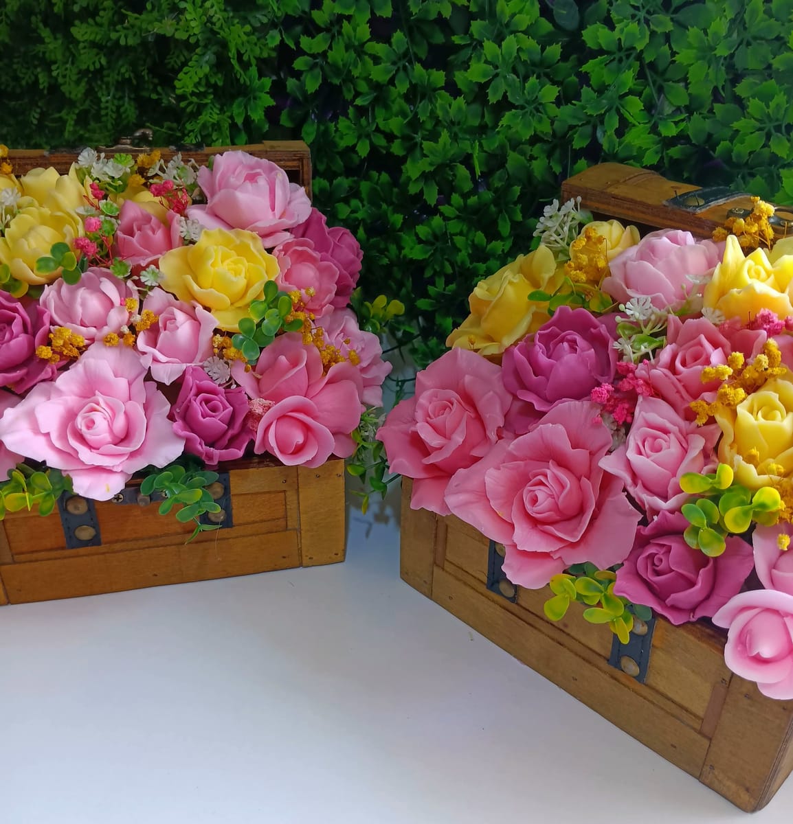 Начало / Продукти / Букет от глицеринов сапун / Сандъче с Ароматни Цветя от сапун