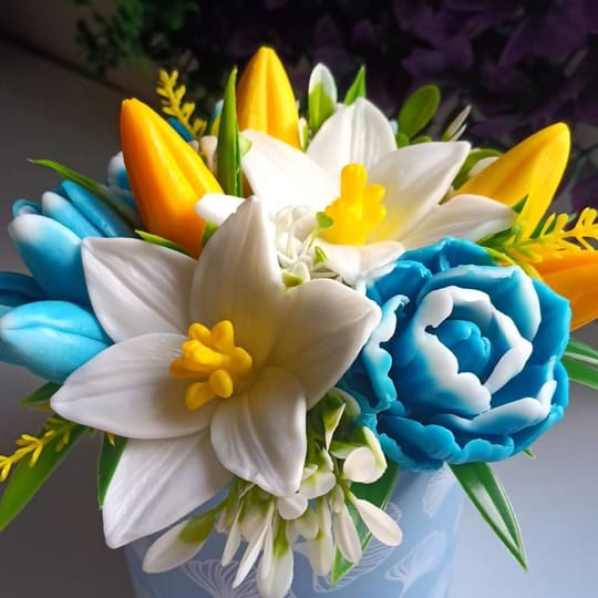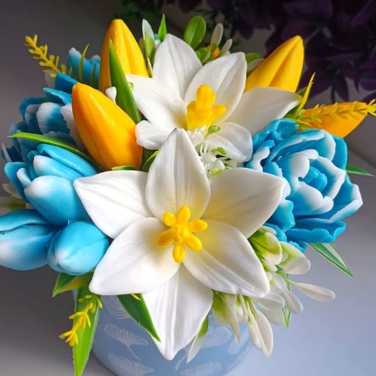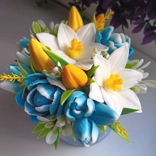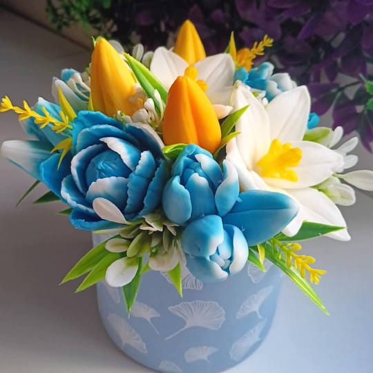 Начало / Продукти / Букет от глицеринов сапун / "Синя лагуна" ароматни лалета от сапун