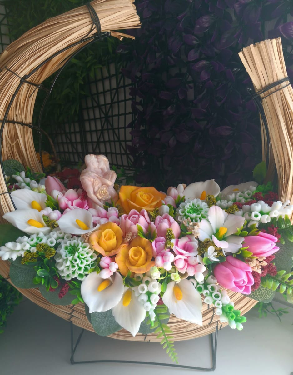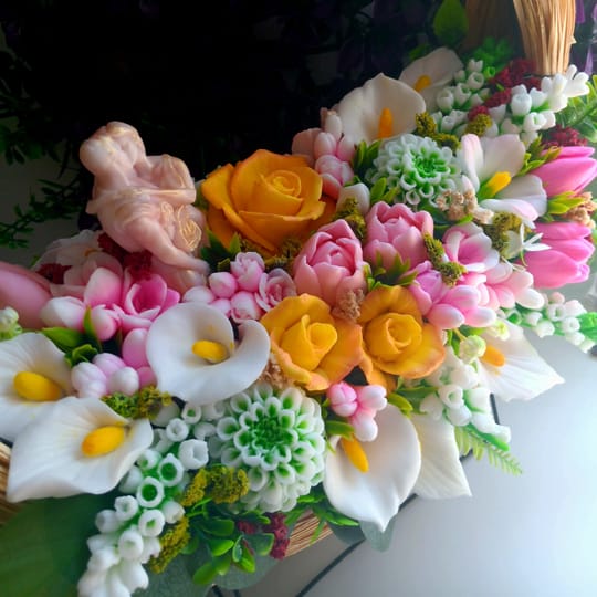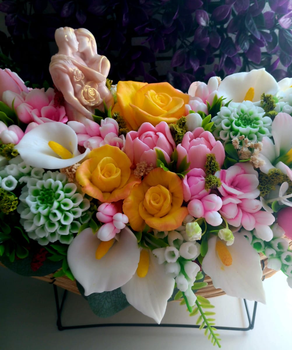За един от най-вълшебните дни в живота – сватбата – създадох този ароматен букет от глицеринов сапун ❤️ Всяко цвете е изработено с внимание и обич, за да носи не само красота, но и символика ❤️ Нарекох го „Вечна целувка“ – защото, както една целувка запечатва обета за вярност и любов, така и този букет остава завинаги като скъп спомен. Той не увяхва, не губи своя аромат и чар, а напомня за най-съкровения ден от живота на едно семейство. ? Перфектен е като символичен подарък за младоженци