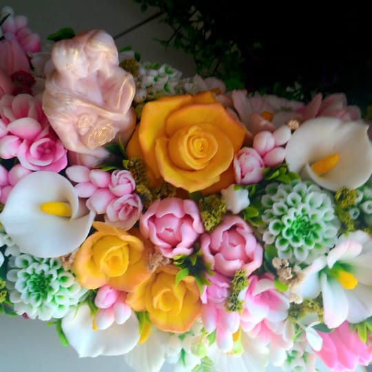 Начало / Продукти / Букет от глицеринов сапун / "Вечна целувка" букет за младоженци